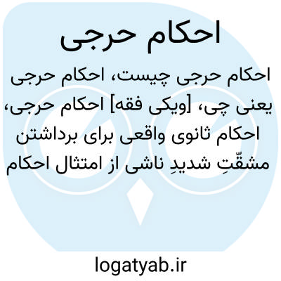 [ویکی فقه] احکام حرجی، احکام ثانوی واقعی برای برداشتن مشقّتِ شدیدِ ناشی از امتثال احکام اوّلی می باشد.