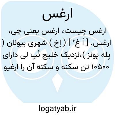 ارغس. [ اَ غ ُ ] ( اِخ ) شهری بیونان ( پله پونز )،نزدیک خلیج نُپ لی دارای 10500 تن سکنه و سکنه آن را ارغیو خوانند: قال ابومعشر فی المقالة الثانیة من کتاب الالوف ان بلدة من المغرب کانت تسمی فی قدیم الدهر ارغس و کان اهلها یسمون ارغیوا. ( عیون الانباء ج 1 ص 15 ). و رجوع به ارگس شود.