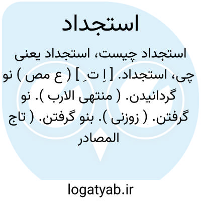 استجداد. [ اِ ت ِ ] ( ع مص ) نو گردانیدن. ( منتهی الارب ). نو گرفتن. ( زوزنی ). بنو گرفتن. ( تاج المصادر بیهقی ): چون فاتحه آن محنت پیدا شد و جمعی از معارف ماوراءالنهر بلذت استطراف و استجداد نائل شدند و از تطاول و تمادی ایّام آل سامان ملالت نمودند... ( ترجمه تاریخ یمینی چ 1272 صص 112 - 113 ). مکاتبه دیگر رسانیدند مشتمل بر استیناف مصادقت و استجداد احکام موافقت... ( ترجمه تاریخ یمینی ص 175 ).