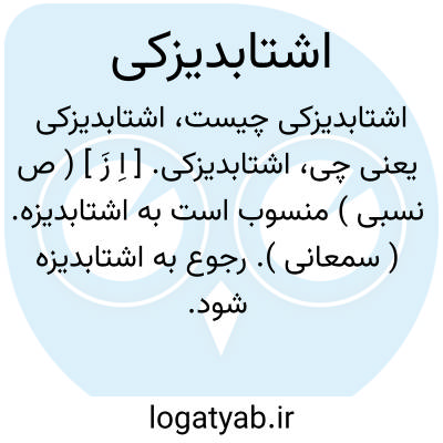 اشتابدیزکی. [ اِ زَ ] ( ص نسبی ) منسوب است به اشتابدیزه. ( سمعانی ). رجوع به اشتابدیزه شود.