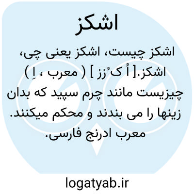 اشکز.[ اُ ک ُزز ] ( معرب، اِ ) چیزیست مانند چرم سپید که بدان زینها را می بندند و محکم میکنند. معرب ادرنج فارسی. ( از اقرب الموارد ). چیزی که به ادیم سپید ماند وبدان زین را استوار کنند. ( منتهی الارب ) ( آنندراج ). دوال سیرم. ( مهذب الاسماء ). چیزی مانند ادیم سپید که بدان زین را استوار کنند. ( ناظم الاطباء ). ادرنگ. اَدرَنج. || حیوانی دریایی. ( مهذب الاسماء ).