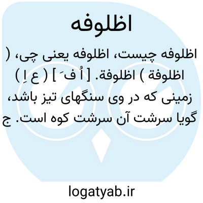 ( اظلوفة ) اظلوفة. [ اُ ف َ ] ( ع اِ ) زمینی که در وی سنگهای تیز باشد، گویا سرشت آن سرشت کوه است. ج، اظالیف. ( منتهی الارب ) ( ناظم الاطباء ) ( آنندراج ). اظلوفه از زمین؛ تکه ای خشن سخت دارای سنگهای تیز بر طبیعت خلقت کوه. ( از متن اللغة ) ( از اقرب الموارد ). و رجوع به اظالیف شود.