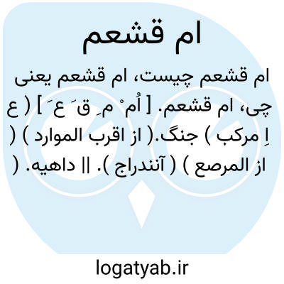 ام قشعم. [ اُم ْ م ِ ق َ ع َ ] ( ع اِ مرکب ) جنگ.( از اقرب الموارد ) ( از المرصع ) ( آنندراج ). || داهیه. ( اقرب الموارد ) ( المرصع ). سختی. ( آنندراج ). || کفتار. || عنکبوت. ( اقرب الموارد ) ( المرصع ) ( آنندراج ) ( مهذب الاسماء ). || مرگ. ( از المرصع ) ( مهذب الاسماء ) ( از اقرب الموارد ). موت. ( آنندراج ). و از آن است: الی حیث القت