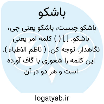 باشکو. [ ] ( ) کلمه امر یعنی نگاهدار. توجه کن. ( ناظم الاطباء ). این کلمه را شعوری با گاف آورده است و هر دو در آن متفردند. و رجوع به باشگو شود.