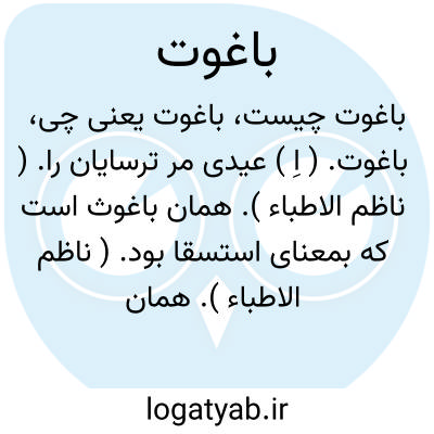 باغوت. ( اِ ) عیدی مر ترسایان را. ( ناظم الاطباء ). همان باغوث است که بمعنای استسقا بود. ( ناظم الاطباء ). همان باعوث است. ( منتهی الارب ). اعجمی معرب است و آن عید نصاری است. ( المعرب جوالیقی ص 57 ). در حاشیه المعرب آمده که صحیح آن باعوث است. ( همان کتاب حاشیه همان صفحه ). و رجوع به باعوث شود.