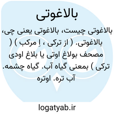بالاغوتی. ( از ترکی، اِ مرکب ) ( مصحف بولاغ اوتی یا بلاغ اودی ترکی ) بمعنی گیاه آب. گیاه چشمه. آب تره. اوتره. و نیز رجوع به بالاقوتی شود.