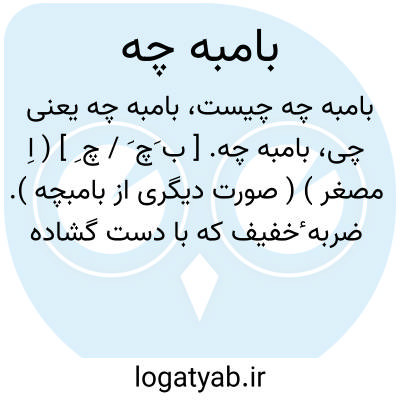 بامبه چه. [ ب َچ َ / چ ِ ] ( اِ مصغر ) ( صورت دیگری از بامبچه ). ضربه ٔخفیف که با دست گشاده بر تارک سر کسی زنند. بامب کوچک که بر سر کسی زنند. رجوع به بامب و بامبچه شود.