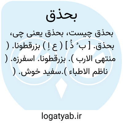 بحذق. [ ب ُ ذُ ] ( ع اِ ) بزرقطونا. ( منتهی الارب ). بزرقطونا. اسفرزه. ( ناظم الاطباء ).سفید خوش. ( لغت محلی شوشتر ). و رجوع به بحدق شود.
