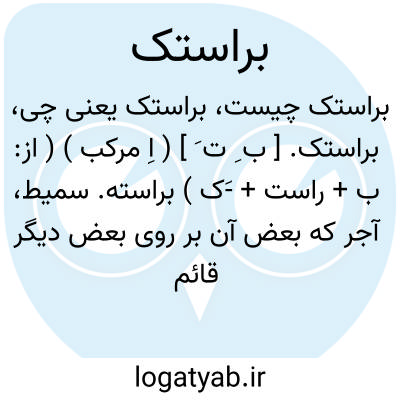 براستک. [ ب ِ ت َ ] ( اِ مرکب ) ( از: ب + راست + -َک ) براسته. سمیط، آجر که بعض آن بر روی بعض دیگر قائم باشد ابوعبیده گوید همان است که بفارسی آنرا براستق گویند. ( تاج العروس ). مؤلف در یادداشتی نویسد: شاید براستک همان است که امروز آنرا تیغه ( دیوار تیغه ای ) مینامند. و رجوع به براسته شود.
