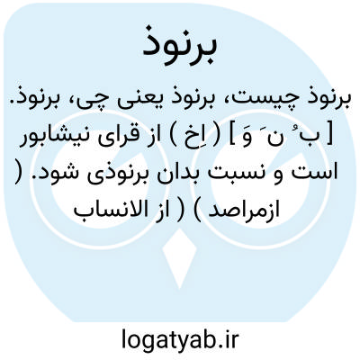 لغت نامه دهخدا برنوذ. [ ب ُ ن َ وَ ] ( اِخ ) از قرای نیشابور است و نسبت بدان برنوذی شود. ( ازمراصد ) ( از الانساب سمعانی ). و رجوع به برنوه شود.
