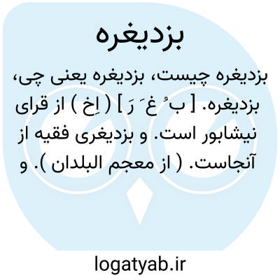 بزدیغره. [ ب ُ غ َ رَ ] ( اِخ ) از قرای نیشابور است. و بزدیغری فقیه از آنجاست. ( از معجم البلدان ). و رجوع به مرآت البلدان ج 1 ص 199 شود.