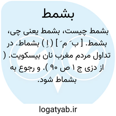 بشمط. [ ب َ م َ ] ( اِ ) بشماط. در تداول مردم مغرب نان بیسکویت. ( از دزی ج 1 ص 90 ). و رجوع به بشماط شود.