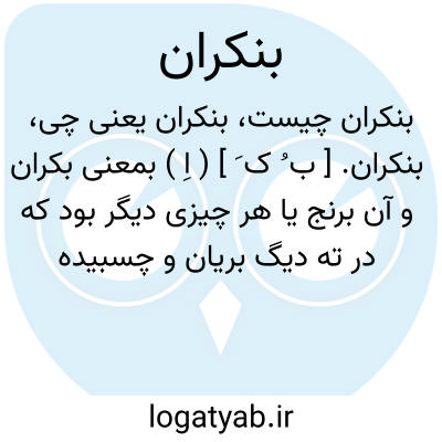 بنکران. [ ب ُ ک َ ] ( اِ ) بمعنی بکران و آن برنج یا هر چیزی دیگر بود که در ته دیگ بریان و چسبیده باشد. ( برهان ) ( انجمن آرا ) ( از آنندراج ). ته دیگی. ( رشیدی ). برنجی را گویند که در ته دیگ بریان شده مانده باشد. ( غیاث ). بکران و هر چیز برشته شده و چسبیده به ته دیگ. ( ناظم الاطباء ):