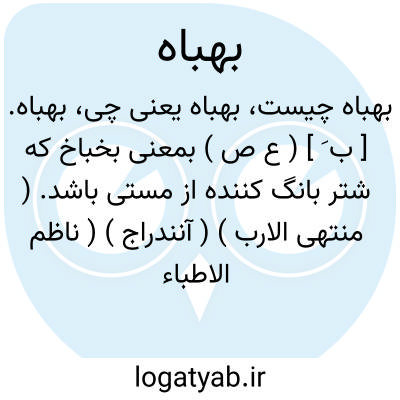 بهباه. [ ب َ ] ( ع ص ) بمعنی بخباخ که شتر بانگ کننده از مستی باشد. ( منتهی الارب ) ( آنندراج ) ( ناظم الاطباء ) ( از اقرب الموارد ).