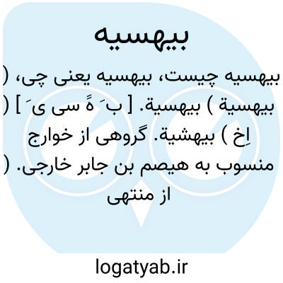 ( بیهسیة ) بیهسیة. [ ب َ هََ سی ی َ ] ( اِخ ) بیهشیة. گروهی از خوارج منسوب به هیصم بن جابر خارجی. ( از منتهی الارب ) ( از مفاتیح ). اصحاب ابوبیهس بن الهیصم بن جابر معتقد بودند که ایمان عبارت است از اقرار و یقین بخدا و به آنچه رسول ( ص ) آورده است و درنسبت افعال به اختیار بندگان با قدریه همرأیند. ( از تعریفات ). یکی از پانزده فرقه خوارج. ( یادداشت مؤلف ) ( بیان الادیان ) ( ملل و نحل ). و رجوع به العقدالفرید ج 2 ص 222، و نیز رجوع به ابوبیهس و بیهشیة شود.