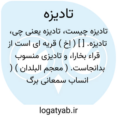 تادیزه. [ ] ( اِخ ) قریه ای است از قراء بخارا، و تادیزی منسوب بدانجاست. ( معجم البلدان ) ( انساب سمعانی برگ 102 «ب » ).