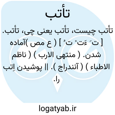 لغت نامه دهخدا تأتب. [ ت َ ءَت ْ ت ُ ] ( ع مص )آماده شدن. ( منتهی الارب ) ( ناظم الاطباء ) ( آنندراج ). || پوشیدن اِتب را. ( منتهی الارب ) ( آنندراج ). رجوع به تأتیب شود. || سخت شدن. || گذاشتن چله کمان بر سینه و بیرون آوردن هر دو بازوان. ( منتهی الارب ) ( آنندراج ) ( ناظم الاطباء ): تأتب قوسه علی ظهره؛ نهادکمان را بر پشت خود. ( منتهی الارب ) ( ناظم الاطباء ).