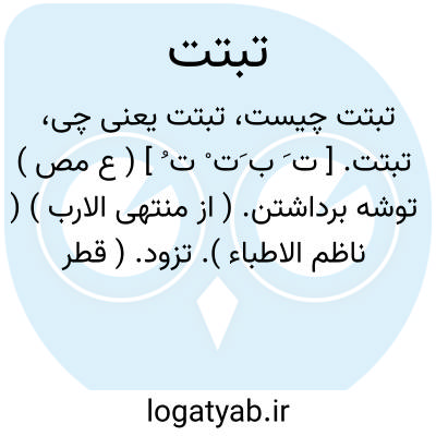 تبتت. [ ت َ ب َت ْ ت ُ ] ( ع مص ) توشه برداشتن. ( از منتهی الارب ) ( ناظم الاطباء ). تزود. ( قطر المحیط ) ( اقرب الموارد ). || متمتع گردیدن. ( از منتهی الارب ) ( ناظم الاطباء ). تمتع. ( قطر المحیط ). || تقطع.( اقرب الموارد ) ( قطر المحیط ). رجوع به تبتیت شود.