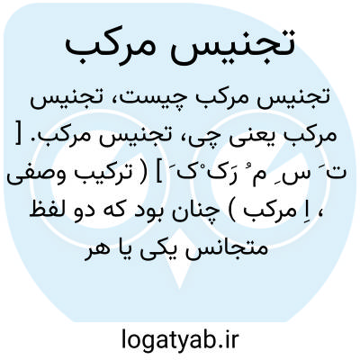 تجنیس مرکب. [ ت َ س ِ م ُ رَک ْک َ ] ( ترکیب وصفی، اِ مرکب ) چنان بود که دو لفظ متجانس یکی یا هر دو مرکب بود و این دو نوع است، یکی آنکه در لفظ و خط متشابه باشند و دیگر آنکه در لفظ متشابه و در خط مختلف، این بازپسین را علی الخصوص تجنیس مفروق خوانند، مثال هر دو نوع از نثر تازی: اِن علت ْدولةُ اوغاد فَصنعُاﷲ رائح او غاد. دیگر: کنت ُ اطمع فی تجریبک َ و مَطایاالجهل تجری بک. مثال دیگر از نثر پارسی: تا زنده ام در راه مهر تو تازنده ام. من مرده نیم ولکن مردنیم. مثال هر دو گونه از شعر تازی: