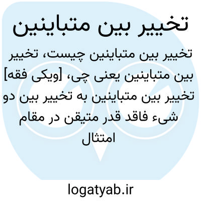 تخییر بین متباینین، که مقابل تخییر بین اقل و اکثر می باشد، عبارت است از تخییر در اموری که رابطه آنها با یک دیگر تباینی است ارتباط اقل و اکثری ندارند و هیچ قدر متیقنی میان آنها وجود ندارد، مثل: تخییر در خصال کفاره که مکلف، بین اطعام فقیر یا شصت روز روزه و یا آزاد کردن بنده مخیر است.در این مثال، به تک تک آن موارد امر شده است و تخییر، از عطف آنها به هم با کلمه «او» فهمیده می شود. ولی گاهی فقط یک امر وجود دارد، اما چون به جامع انتزاعی میان افراد متباین تعلق گرفته است، عقل به تخییر حکم می کند، مانند آن که مولا به عبد خود بگوید: «اشتر قلماً»؛ که در این صورت عبد بین خریدن قلم حبر (مداد) و قلم رصاص (فلزی) و غیر آنها مخیر است.