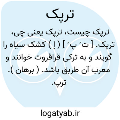 ترپک. [ ت َ پ َ ] ( اِ ) کشک سیاه را گویند و به ترکی قراقروت خوانند و معرب آن طربق باشد. ( برهان ). ترپ. ترپه. ترف. کشک سیاه... طربق معرب آن. ( از فرهنگ رشیدی ) ( از آنندراج ). کشک سیاه و قراقروت و ترف. ( ناظم الاطباء ):