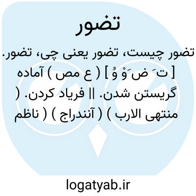 تضور. [ ت َ ض َوْ وُ ] ( ع مص ) آماده گریستن شدن. || فریاد کردن. ( منتهی الارب ) ( آنندراج ) ( ناظم الاطباء ). فریاد کردن از درد ضرب یا از گرسنگی. ( از اقرب الموارد ). || بر خویشتن پیچیدن از گرسنگی یا از زخم. ( تاج المصادر بیهقی ). بر خویشتن پیچیدن. ( زوزنی ). درپیچیدن و غلطیدن بر پشت و شکم، از گرسنگی و اندوه و الم و جز آن. ( منتهی الارب ) ( آنندراج ) ( ناظم الاطباء ). و منه ُ الحدیث: دخل علی امرة و هی تتضور من شدة الحمی. ( منتهی الارب ). || بانگ کردن گرگ و سگ و شیر و روباه از گرسنگی. ( از اقرب الموارد ). || گشادن چوزه هر دو بازو را پیش مادر تا خورش دهد. ( منتهی الارب ) ( آنندراج ) ( ناظم الاطباء ). و رجوع به تضیر شود.