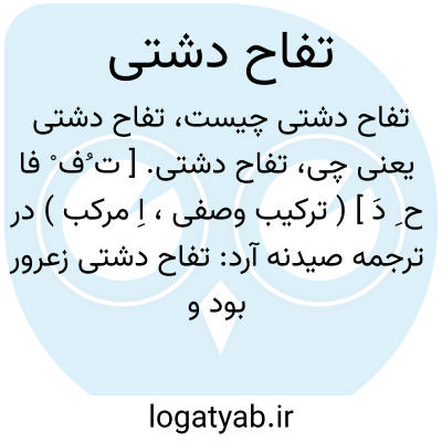 تفاح دشتی. [ ت ُف ْ فا ح ِ دَ ] ( ترکیب وصفی، اِ مرکب ) در ترجمه صیدنه آرد: تفاح دشتی زعرور بود و اطیوس گوید تفاح نوعی است از پودنه و منبت آن در نواحی موصل است و نبات او در کوهها و سنگستان باشد. او را بدست بمالند و نمک بر او ریزند و بخورند و اهل موصل او را تفاح بری گویند.... و رجوع به تفاح بری شود.