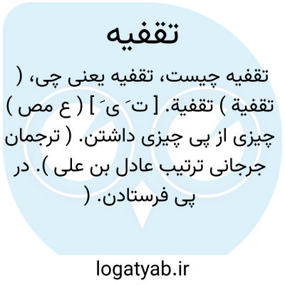 ( تقفیة ) تقفیة. [ ت َ ی َ ] ( ع مص ) چیزی از پی چیزی داشتن. ( ترجمان جرجانی ترتیب عادل بن علی ). در پی فرستادن. ( منتهی الارب ) ( آنندراج ) ( ناظم الاطباء )، یقال: تقفیت علی اثره بفلان و قفیت زیداً و به؛ ای اتبعه ایاه. ( منتهی الارب ) ( از ناظم الاطباء ) ( از اقرب الموارد ). قوله تعالی: ثم قفینا علی آثارهم برسلنا. ( قرآن 57 / 27 ). و منه ُ الکلام المقفی و سمیت قوافی الشعر لان بعضها یتبع اثر بعض. ( منتهی الارب ) ( ناظم الاطباء ).