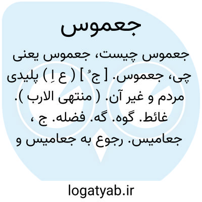 جعموس. [ ج ُ ] ( ع اِ ) پلیدی مردم و غیر آن. ( منتهی الارب ). غائط. گوه. گه. فضله. ج، جعامیس. رجوع به جعامیس و جعمسه شود.