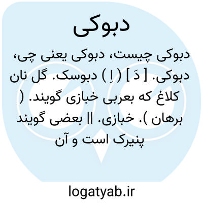 دبوکی. [ دَ ] ( اِ ) دبوسک. گل نان کلاغ که بعربی خبازی گویند. ( برهان ). خبازی. || بعضی گویند پنیرک است و آن نباتی باشد آفتاب پرست چه بهر طرف که آفتاب رود آن نبات روی بجانب آفتاب دارد و بعربی ملوکیه خوانند. ( برهان ). ملوکیه. و رجوع به فرهنگ شعوری ج 1 ص 412 شود.