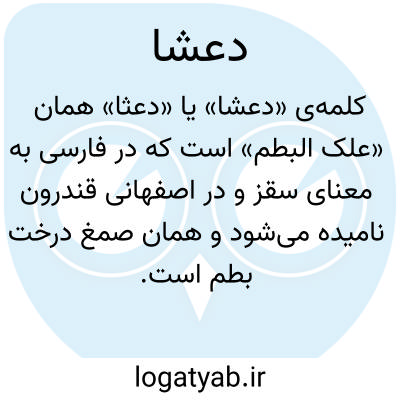 کلمه‌ی «دعشا» یا «دعثا» همان «علک البطم» است که در فارسی به معنای سقز و در اصفهانی قندرون نامیده می‌شود و همان صمغ درخت بطم است. این ماده در طب سنتی دارای طبع گرم و خشک است و خواص متعددی دارد؛ از جمله محلل، ملطف، مدرّ بول و مقوی هاضمه. حکمای یونان و روم نیز آن را در اکثر خواص بهتر از مصطکی می‌دانستند.