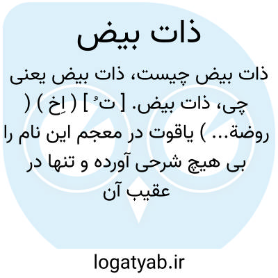 ذات بیض. [ ت ُ ] ( اِخ ) ( روضة... ) یاقوت در معجم این نام را بی هیچ شرحی آورده و تنها در عقیب آن گوید: قال منذربن درهم: