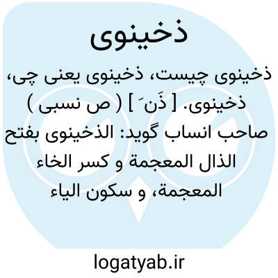 ذخینوی. [ ذَن َ ] ( ص نسبی ) صاحب انساب گوید: الذخینوی بفتح الذال المعجمة و کسر الخاء المعجمة، و سکون الیاء المنقوطة باثنتین من تحتها و فتح النون و فی آخرها الواو هذه النسبة الی قریة ذخینو علی ثلاثة فراسخ من سمرقند.