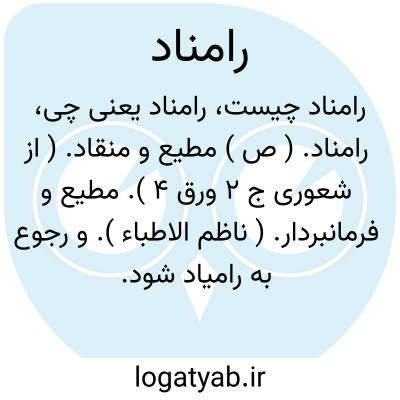 رامناد. ( ص ) مطیع و منقاد. ( از شعوری ج 2 ورق 4 ). مطیع و فرمانبردار. ( ناظم الاطباء ). و رجوع به رامیاد شود. || فروتن و متواضع. || مکار و محیل. ( ناظم الاطباء ).