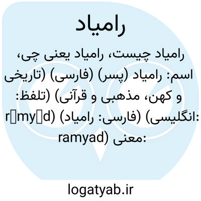 اسم: رامیاد (پسر) (فارسی) (تاریخی و کهن، مذهبی و قرآنی) (تلفظ: rāmyād) (فارسی: رامياد) (انگلیسی: ramyad)