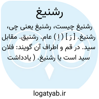 رشنیغ. [ رَ ] ( اِ ) عام. رشنیق. مقابل سید. در قم و اطراف آن گویند: فلان سید است یا رشنیغ. ( یادداشت مؤلف ). و رجوع به رشنیق شود.