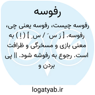 رفوسه. [ رَ س َ / س ِ ] ( اِ ) به معنی بازی و مسخرگی و ظرافت است. رجوع به رفوشه شود. || پی بردن و یافتن. || برچیدن. ( آنندراج ) ( انجمن آرا ). رجوع به رفوشه شود.
