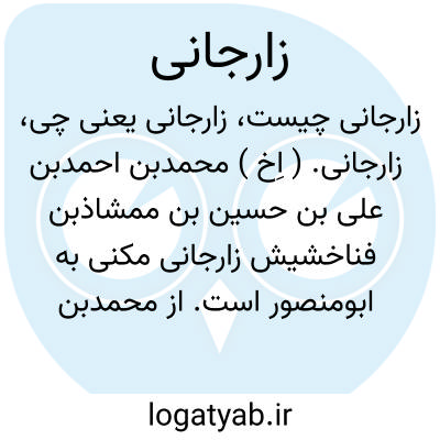 زارجانی. ( اِخ ) محمدبن احمدبن علی بن حسین بن ممشاذبن فناخشیش زارجانی مکنی به ابومنصور است. از محمدبن علی مقری روایت کند. ( از معجم البلدان ). و رجوع به زارجان شود.
