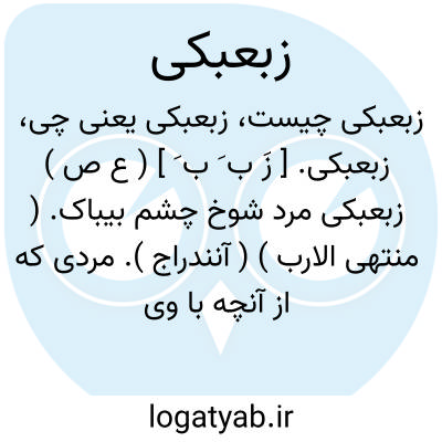 زبعبکی. [ زَ ب َ ب َ ] ( ع ص ) زبعبکی مرد شوخ چشم بیباک. ( منتهی الارب ) ( آنندراج ). مردی که از آنچه با وی گویند باک ندارد. دریده. ( اقرب الموارد ). بسیار بدکننده است که پروا نمیکند به آنچه گفته شده است از برای او. زبعبک. ( شرح قاموس ). آنکه باک ندارد از بدی که او را گویند یا بدیهایی که درباره او گویند. ( از متن اللغه ). رجوع به زبعبک شود.
