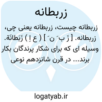 زربطانه. [ زَ ب َ ن َ ] ( ع اِ ) زَبَطانَة. وسیله ای که برای شکار پرندگان بکار برند... در قرن شانزدهم نوعی از سلاح آتشین... نوعی تفنگ بلند... ( از دُزی ج 1ص 584 ). مجرای دراز سوراخ شده است که گلوله گلین و تیرهای ناوک را در آن با دمیدن پرت می کنند و هم اکنون به زربطانه معروف است و آن مرادف سبطانه باشد. ( از تاج العروس ). و حریری در درة الغوص می نویسد: چوب دراز میان خالی را که بدان گلوله گلین پرت کنند زربطانه گویند، در حالی که صواب سبطانه است؛ زیرااین کلمه ( سبطانه ) مشتق از سبوطة به معنی طول و امتداد است [ وساباط هم از همین ریشه است به علت امتدادآن میان دو خانه ]. رجوع به زبطانه و سبطانه شود.
