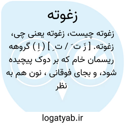 زغوته. [ زَ ت َ / ت ِ ] ( اِ ) گروهه ریسمان خام که بر دوک پیچیده شود، و بجای فوقانی، نون هم به نظر آمده است ( زغونه ). ( برهان ) ( آنندراج ) ( از ناظم الاطباء ) ( از فرهنگ فارسی معین ). || مخفف زاغوته هم هست که ماسوره باشد. ( ناظم الاطباء ). زاغوته. ماسوره. ( ناظم الاطباء ) ( از فرهنگ فارسی معین ).
