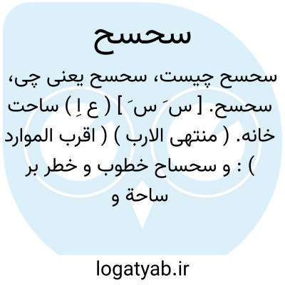 سحسح. [ س َ س َ ] ( ع اِ ) ساحت خانه. ( منتهی الارب ) ( اقرب الموارد ): و سحساح خطوب و خطر بر ساحة و سحسح ایران متقاطر بودی. ( دره نادره چ شهیدی ص 676 ). || ( ص ) باران سخت ریز. ( منتهی الارب ) ( اقرب الموارد ).