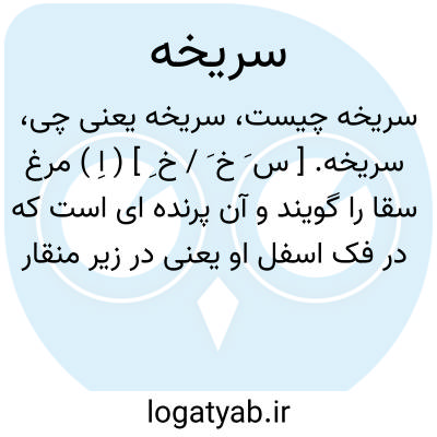 سریخه. [ س َ خ َ / خ ِ ] ( اِ ) مرغ سقا را گویند و آن پرنده ای است که در فک اسفل او یعنی در زیر منقار زیرین او پوستی بمانند مشگیجه آویخته است. ( برهان ) ( آنندراج ). مرغ سقا. ( اوبهی ). ظاهراً مصحف سریچه است. ( حاشیه برهان قاطع چ معین ). رجوع به سریجه و سریچه شود.