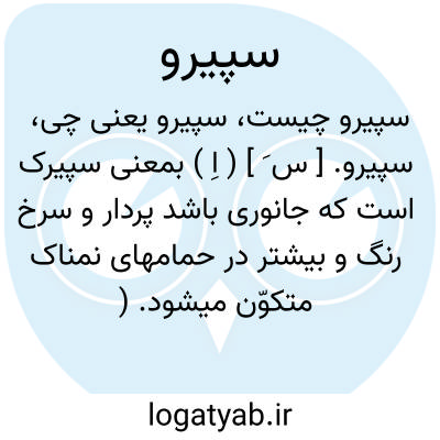 سپیرو. [ س َ ] ( اِ ) بمعنی سپیرک است که جانوری باشد پردار و سرخ رنگ و بیشتر در حمامهای نمناک متکوّن میشود. ( برهان ). و رجوع به سپیرک شود.