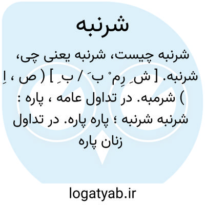 شرنبه. [ ش ِ رِم ْ ب َ / ب ِ ] ( ص، اِ ) شرمبه. در تداول عامه، پاره: شرنبه شرنبه؛ پاره پاره. در تداول زنان پاره پاره. با پاره های آویخته ( جامه ). ( یادداشت مؤلف ). رجوع به شرمبه شود.