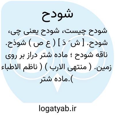 شودح. [ ش َ دَ ] ( ع ص ) شوذح. ناقه شودح؛ ماده شتر دراز بر روی زمین. ( منتهی الارب ) ( ناظم الاطباء ).ماده شتر دراز. ( مهذب الاسماء ). رجوع به شوذح شود.