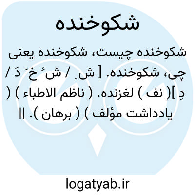 شکوخنده. [ ش ِ / ش ُ خ َ دَ / دِ ]( نف ) لغزنده. ( ناظم الاطباء ) ( یادداشت مؤلف ) ( برهان ). || تیزرو. سبکپا. ( ناظم الاطباء ) ( آنندراج ). || اسب سکندری خورده و بسر درآینده. ( برهان ) ( آنندراج ) ( ناظم الاطباء ). شئیت؛ اسب شکوخنده.( یادداشت مؤلف ) ( منتهی الارب ). || هراسیده. ( ناظم الاطباء ). هیبت دارنده. ( برهان ) ( آنندراج ).
