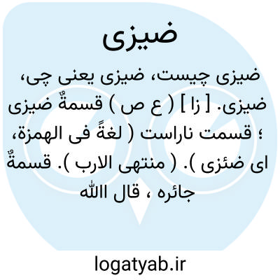 ضیزی. [ زا ] ( ع ص ) قسمةٌ ضیزی؛ قسمت ناراست ( لغةً فی الهمزة، ای ضئزی ). ( منتهی الارب ). قسمةٌ جائره، قال اﷲ تعالی: قسمةٌ ضیزی ( قرآن 22/53 )؛ ای جائرة. بهره کم کرده. بهره ناراست. قسمت ناقصه. بهره به ستم. قسمت غیرعادله. بخش بیدادی.