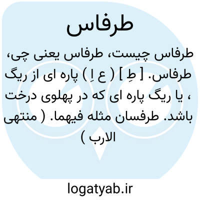 طرفاس. [ طِ ] ( ع اِ ) پاره ای از ریگ، یا ریگ پاره ای که در پهلوی درخت باشد. طرفسان مثله فیهما. ( منتهی الارب ) ( آنندراج ).