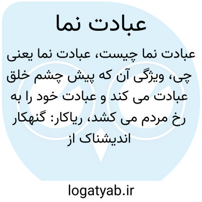 ویژگی آن که پیش چشم خلق عبادت می کند و عبادت خود را به رخ مردم می کشد، ریاکار: گنهکار اندیشناک از خدای / به از پارسای عبادت نمای (سعدی۱: ۱۱۸ ).